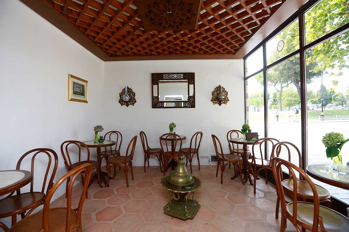 Istanbul Coffeehouse is a Touring establishment where Turkish coffee and tea are served, remaining loyal to the classical style, next to the Cedid Mehmed Efendi Madrasa located in the historical Sultanahmet Square.