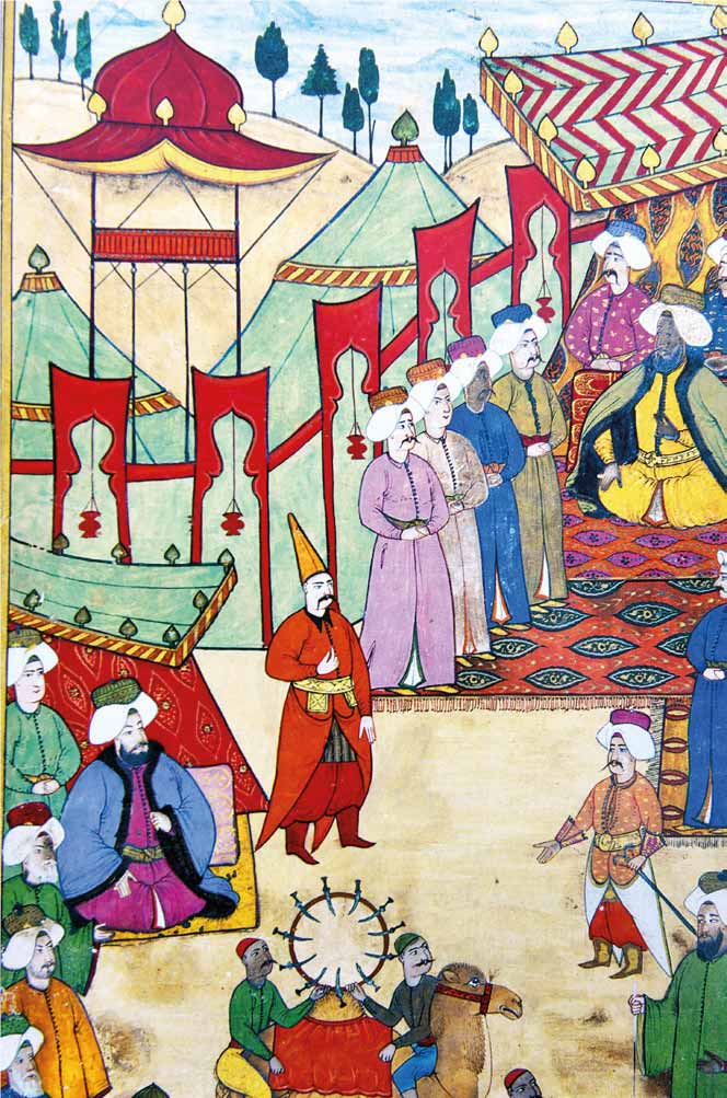 Gerçekte divanhanenin ortasında asılı olan küre, sultanın toplantıları izlediği pencerenin hizasına asılı bir hedef gibidir. Ülkeye adalet getirmek için sultanın yayından fırlayan oklara benzeyen fermanlar, simgesel olarak delikli kürenin bir yanından girip öte yanından çıkarak, dünyaya zarar vermeden hükmettiğini işaret etmektedir. Lokman Bin Hüseyin’e göre veziriazamı denetiminde tutan sağduyu sahibi sultanın yayından çıkan ok küreye zarar vermez. Osmanlı Sultanları’nın adaletin “simgesel mekânı”nı yansıtan divan toplantılarına ellerinde yay ile gelmeleri bu düşünceyi yansıtmaktadır. 1581 tarihli “Şehname-i Selim Han” albümünde Sultan II. Selim’in, Adalet Kulesi penceresinden attığı okun divanhanenin ortasında asılı olan kürenin deliklerinden geçtiği görülmektedir. Kürenin bir deliğinden girip, diğer deliğinden çıkan ok, buradan çıkan kararların yeryüzüne zarar vermeden hedefine ulaştığını ifade eder.