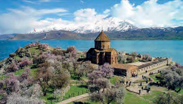 Van merkezine 48 kilometre uzaklıkta, Van’la Tatvan arasındaki bağlantıyı sağlayan karayolu üzerindeki iskeleden ulaşılan Akdamar Adası’nın güneydoğu ucunda alır. Vaspurakan Prensi I. Gagik’le (904 - 938) aynı soydan gelen tarihçi Tomas Artsruni “Astruniler”in Tarihçesi” isimli kitabında soylu hanedanın mimari alanındaki etkin çalışmalarından, inşasına bizzat tanıklık ettiği sayısı saray ve kiliseden sıkça söz eder.