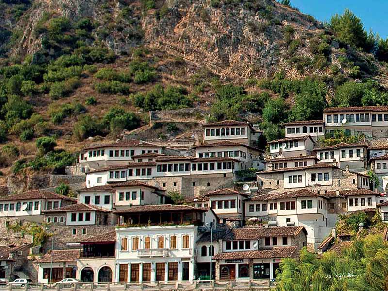 Arnavut taşçılık sanatının izini taşıyan sokaklarında yürüyerek bu evleri temaşa ayrı bir zevk.  Şirin Berat evlerinin arasından yokuşa vurup, bir süre yürüdükten sonra zeytin ve çam ağaçlarının içinden geçip, ünlü Berat Kale’sinin kapısına dayanıyoruz. İnşa tarihi Milattan Önce 6.yüzyıllara kadar uzanan kale, Osmanlılar tarafından 1417’de tamir görmüş. Kale içi ev mimarisi, bizim Antalya ve Alanya Kaleiçi ev mimarisini andırıyor. Evlerin arasındaki taş sokaklarda yürürken iki yanınızda evlerin taş örme duvarlarından sarkan sarmaşıklar size eşlik ediyor ve ortam bizim bugün şehirlerimizde kaybettiğimiz Arnavut kaldırımlı sokaklarda yürüme zevkimizi bize yaşatıyor.