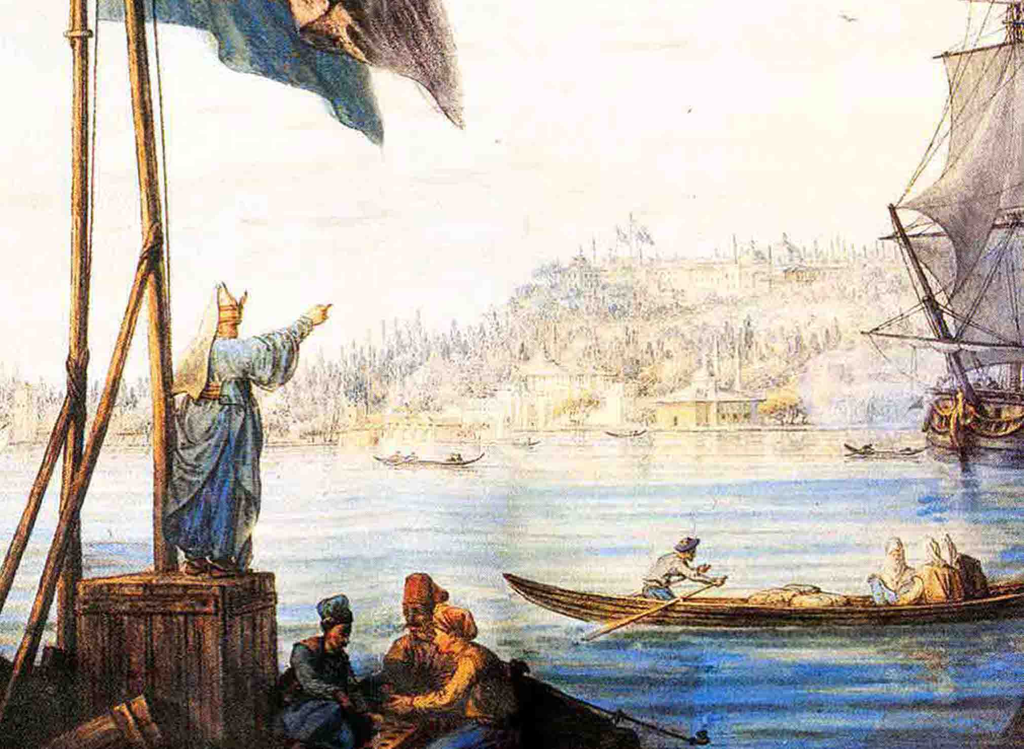 Sultan III. Selim (1789-1807) döneminde kurulan Nizam-ı Cedid Ordusu’nda, ortasında sarı sırma ile işlenmiş kırmızı renkli bayrak kullanılmaya başlanır. Muhtemelen aynı dönemde özellikle Boğaziçi kıyılarında yazlıkları bulunan büyükelçilikler kendi arazilerine diktikleri yüksek direkler üzerinde kendi bayraklarını dalgalandırmaya başlarlar. 5 Mayıs 1841 günü Boğaziçi’nden geçerek Varna’ya doğru yola çıkan ünlü masal yazarı Hans Christian Andersen bu olayı: “Pek çok millete ait dalgalanan bayraklar arasında gözlerim vatanımınkini aradı ve buldu da! Kırmızı zemin üzerine çizilmiş beyaz haçı gördüm; Danimarka, Türk topraklarına Hristiyan haçını dikmişti; rüzgârda dalgalanan bayrak sanki memleketimden selam getiriyordu bana” sözleri ile anlatmaktadır.