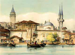 Evliya Çelebi, “ … Galata’nın kuzey tarafında Hicret’in 92.(711) senesinde Abdülaziz oğlu Ömer (717-720) büyük bir kule yaparak ismini “Kahr Kulesikoydu. Hâlâ Kurşunlu Mahzen olan yeri onlar yapı cami ettiler…” demektedir.