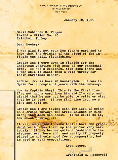 Archibald Roosvelt'ten Targan'a bir mektup.