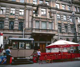 “Neva Bulvarı’nda karşılaştığınız her şey kibarlığın timsalidir.” cümlesini ekliyor öyküsüne. Gerçekten de İstiklal Caddesi’nden yaklaşık 4 kat geniş olan bu bulvarda insanlar arasındaki harmoni, sessiz ve kibarca akan yaya trafiği, gidilen mekânlara huzurla varılmasını sağlıyor. İstiklal Caddesi’nden farklı olarak gözünüzü almayan renkli tabela ve reklam panolarının olmaması, mimarinin bir bütün olarak korunmasıyla siz de yürürken şehrin huzurlu ahengini yakalayabilirsiniz. Raskolnikov’un “yok yok” dediği bu yerde ilk dikkatimi çeken her köşe başında arabalarını seyyar kahveciye çevirmiş satıcılar oluyor.