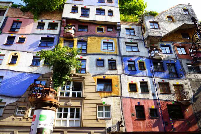 Sonraki durağımız Viyana’nın ünlü Hundertwasser Evi oluyor. Burası Avusturyalı sanatçı Friedensreich Hundertwasser tarafından tasarlanan ve Joseph Krawina ile Peter Pelikan adlı iki mimarın inşa ettiği sıra dışı bir apartman. 250 adet ağaç ile yeşillendirilen, asimetrik çizgilere sahip ve dış yüzeyi rengârenk olan bu sanatsal yapının fotoğraflarını çektikten ve Hundertwasser Village Pasajı’ndan alışveriş yaptıktan sonra tekrar Viyana sokaklarına geçiyoruz.