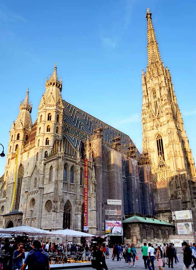 Her biri ayrı bir zarafet örneği olan saraylar, müzeler, kiliseler ve opera binalarından gözlerimizi alamıyor, şehir turu yapan at arabalarına rastladıkça Orta Çağ Avrupa’sında, sanatla tarihin iç içe geçtiği nostaljik bir yolculuk yapıyormuş hissine kapılıyoruz. Ünlü Karntner Caddesi’nden yokuş aşağı inerek şehrin kenarından sessiz sedasız akıp geçen Tuna Nehri’nin kanallarına ulaşıyor, burada fotoğraf molası veriyoruz. Şehrin kalbi olarak nitelendirilen Stephansplatz Meydanı’yla yolumuza devam ediyoruz sonra. Stephansdom Katedrali devasa büyüklüğü, II. Viyana Kuşatmasının ardından Osmanlı’dan kalan topların eritilmesiyle üretildiği söylenen Çanı, yeşil, sarı ve beyaz renklerden oluşan Çinili Çatısı ile çekiyor dikkatimizi.
